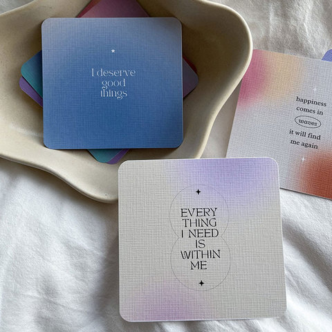 LABON कस्टम आकार डिजाइन स्वयं वाक्यांशों विश्राम सकारात्मक प्रतिज्ञान कार्ड डेक के साथ बॉक्स