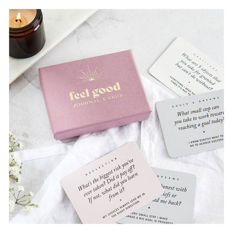 LABON कस्टम प्रिंटिंग पॉजिटिव फील गुड मिनी पिंक मेंटल हेल्थ एफ़िमेशन डेक जर्नल कार्ड